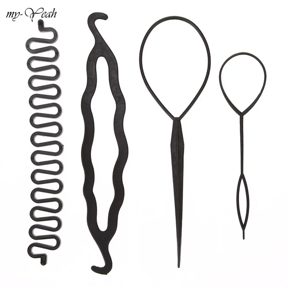 Набор волшебных аксессуаров для укладки волос, 4 шт./компл., 3 вида, заколки для волос, роликовая оплетка для волос, щипцы для завивки, инструмент для укладки