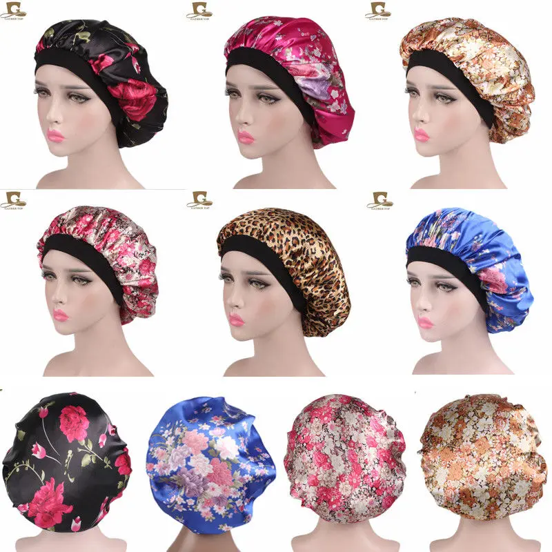 Для женщин широкая полоса атласная капот мягкий Атлас ночь шапочка для сна волос кепки женский тюрбан