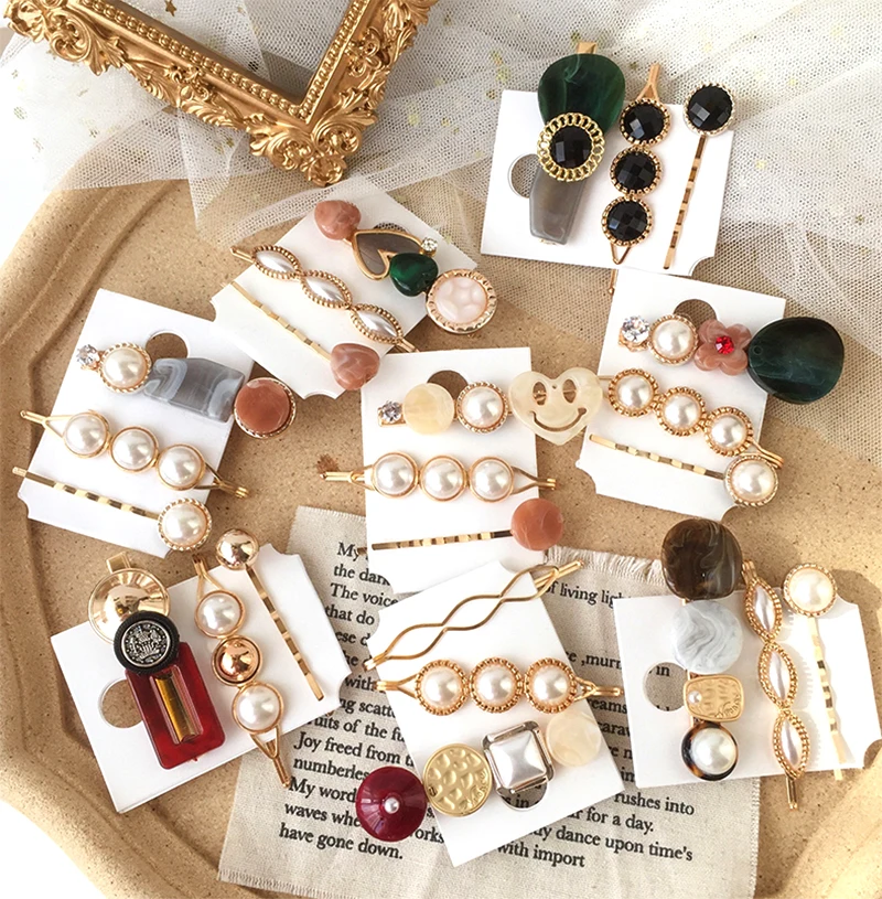 3 шт. заколки для волос для девочек Ретро Сладкий булавка с имитацией жемчуга ацетат металлические шпильки женская заколка аксессуары для в...