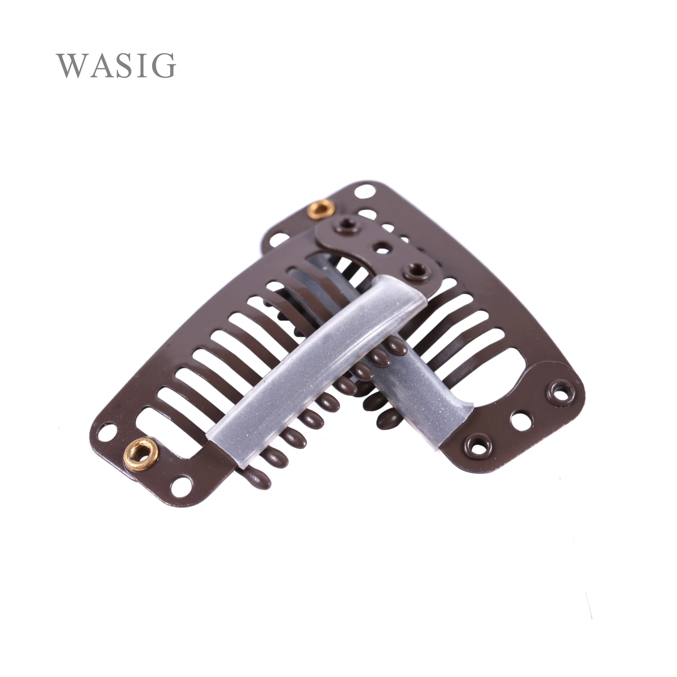 24 шт. 32 мм 9-Зубы волос клипы кнопки металлические зажимы с силиконовый чехол для зажим в Пряди человеческих волос для наращивания парик греб...