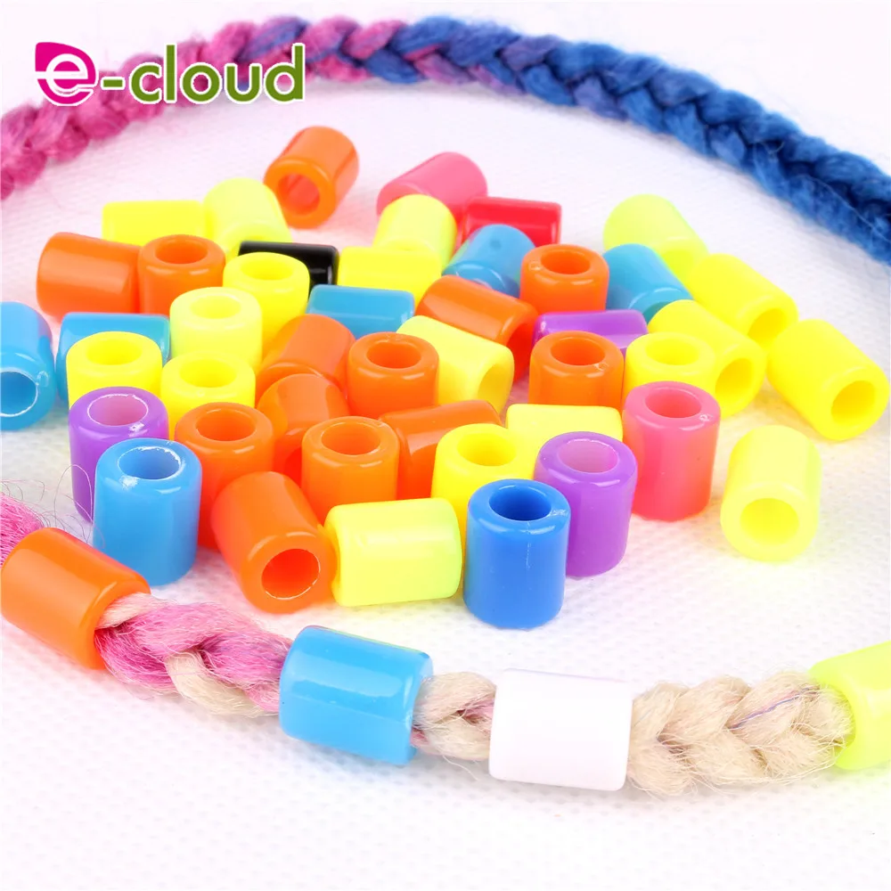 50 шт. смешанные радужные цвета, резиновые дреды, бусины для волос, оплетка, страшные бусины, пластиковые 6 мм отверстия, плетение, трубчатое к...