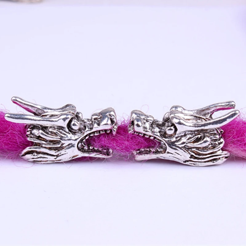 10 шт./лот тибетский серебряный дракон голова, подвязанные лентой, с объемной волной, дредлоки, для увеличения объема, бусины-трубки клипсы ук...