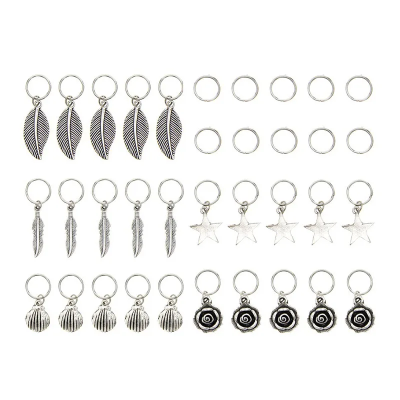 35 шт серебристого металла волос кольца кос дреды бусы листья звезды аксессуары Зажимы «сделай сам» для наращивания волос