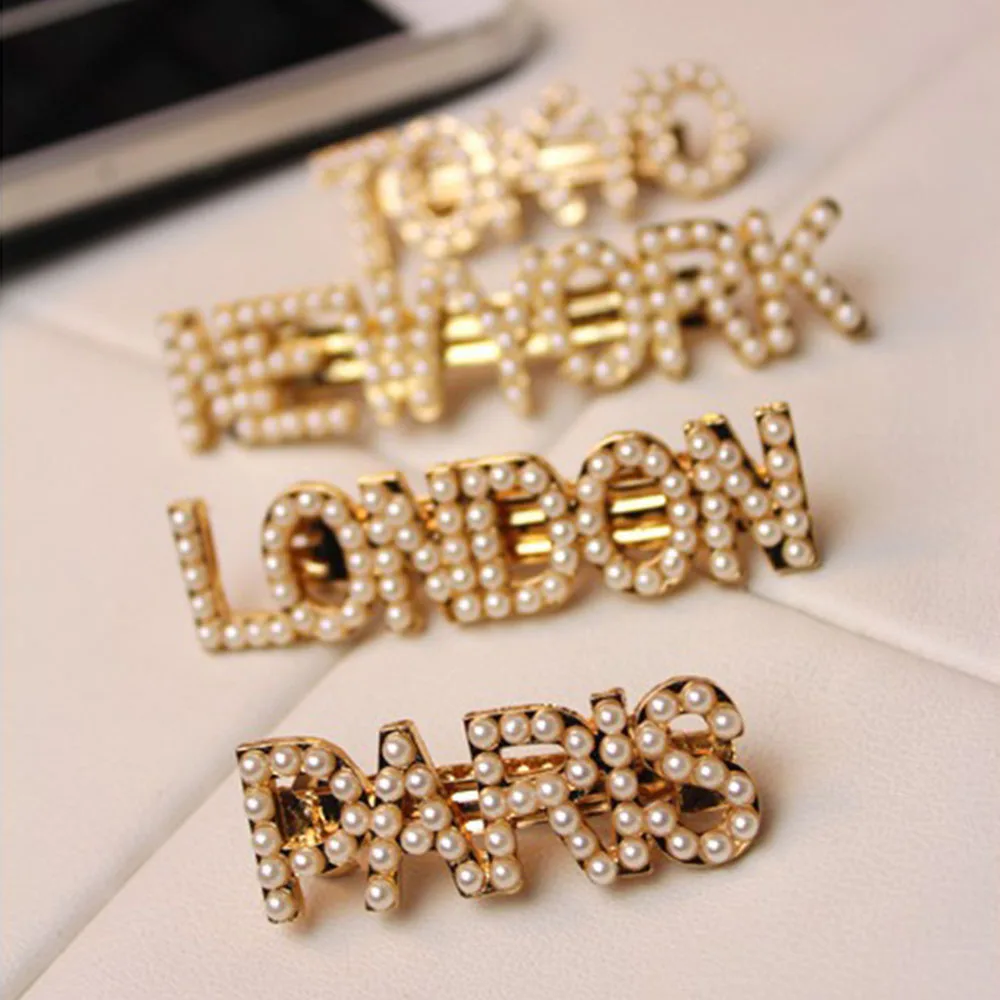 Заколки для волос с простой жемчужиной, модные заколки для волос в стиле Парижа, Лондона, города, с надписью, инструменты для укладки волос, аксессуары-заколки для волос для девушек и женщин