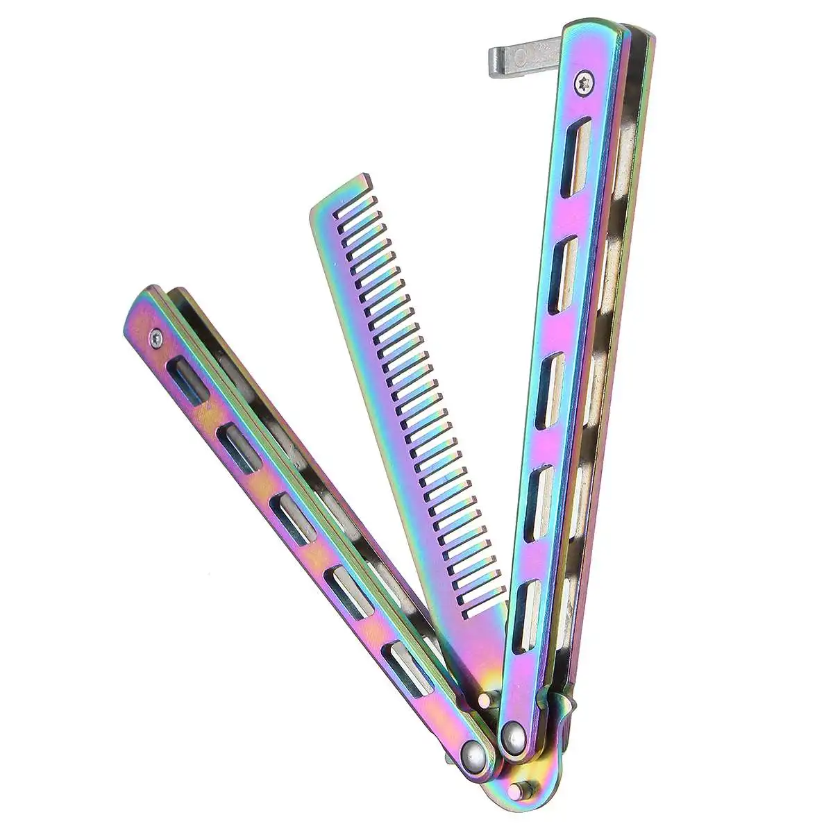 Складной Радужный гребень из нержавеющей стали, нож-бабочка, гребень для бороды и щетки для усов, тренировочный инструмент для укладки пари...