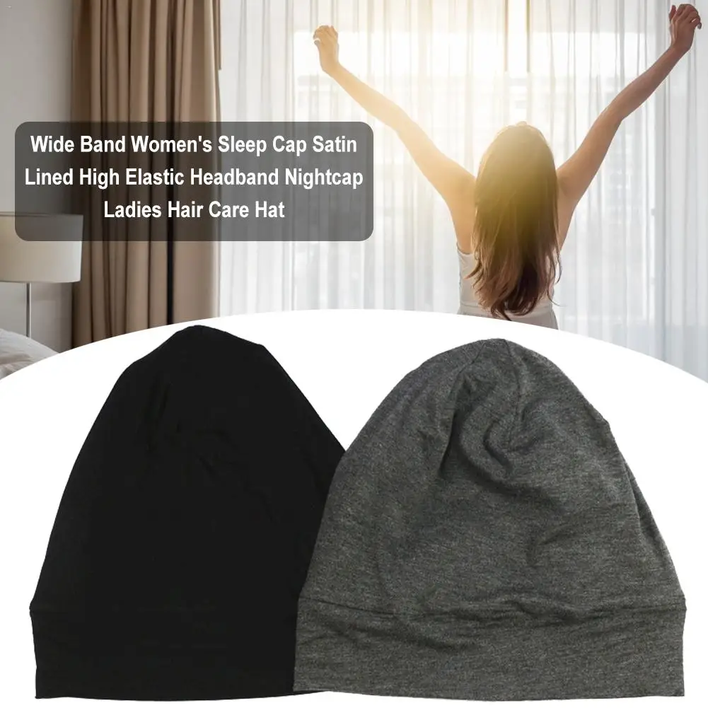 Женский атласный однотонный широкополый колпак для сна, ночная шапочка для сна, шапочка для ухода за волосами, ночная кепка для женщин и муж...
