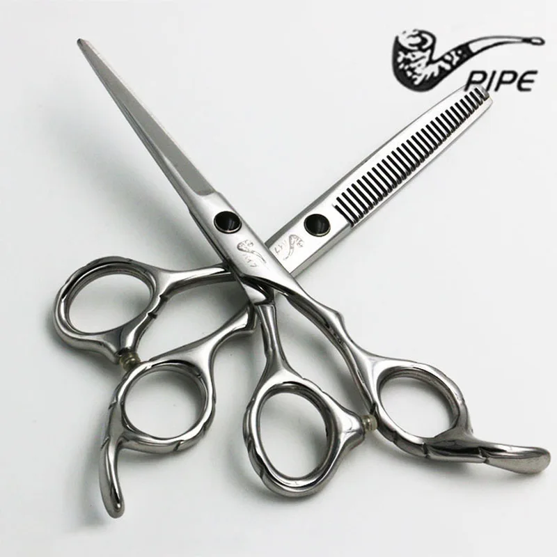 6 "трубы Профессиональный Нержавеющая сталь Ножницы для волос Salon Резка + Истончение Парикмахерские ножницы Регулярный лезвия Инструменты ...