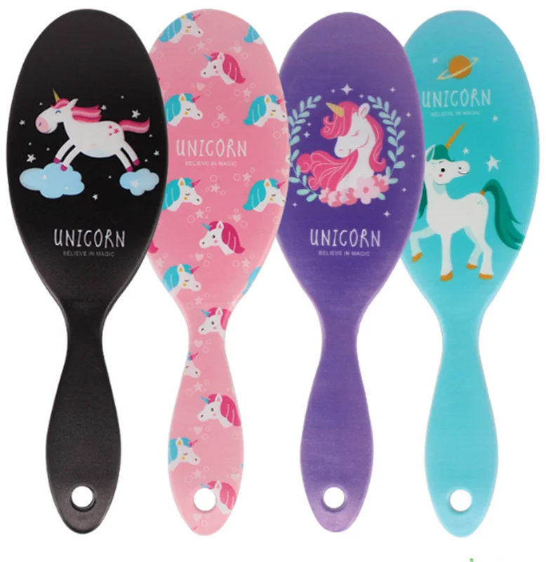 Милые Единорог животных Антистатические волосы кисточки массаж гребень душ мокрый Расчёска, облегчающая Расчесывание Волос Салон Инструм...