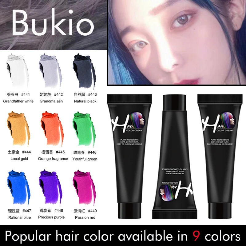 Bukio девушки красоты цвета волос цвет волос краска для волос нетоксичный DIY волосы крем-краска для волос синий серый краска для волос фиолето...