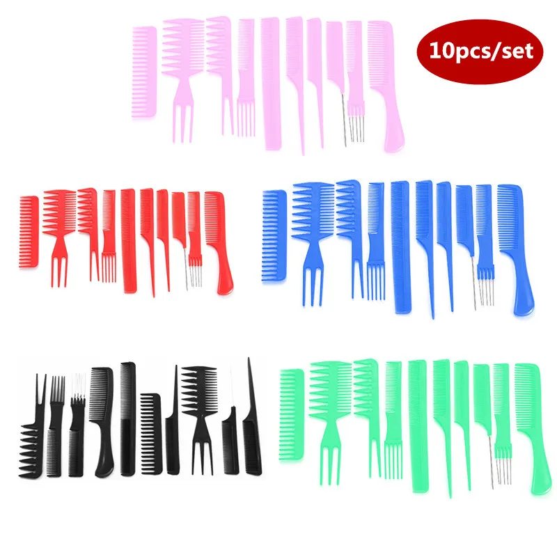 Новинка, 10 шт./лот, для мужчин и женщин, для салона красоты, для укладки волос, парикмахерские, черные пластиковые щетки, расчески, Антистатическая расческа, инструменты для моделирования