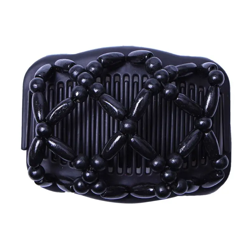 2018 новый для женщин волос деревянные расчески Ретро Волшебная бусина эластичный двойной jewellery гребень клип шпильки Салон укладки Тамер дро...