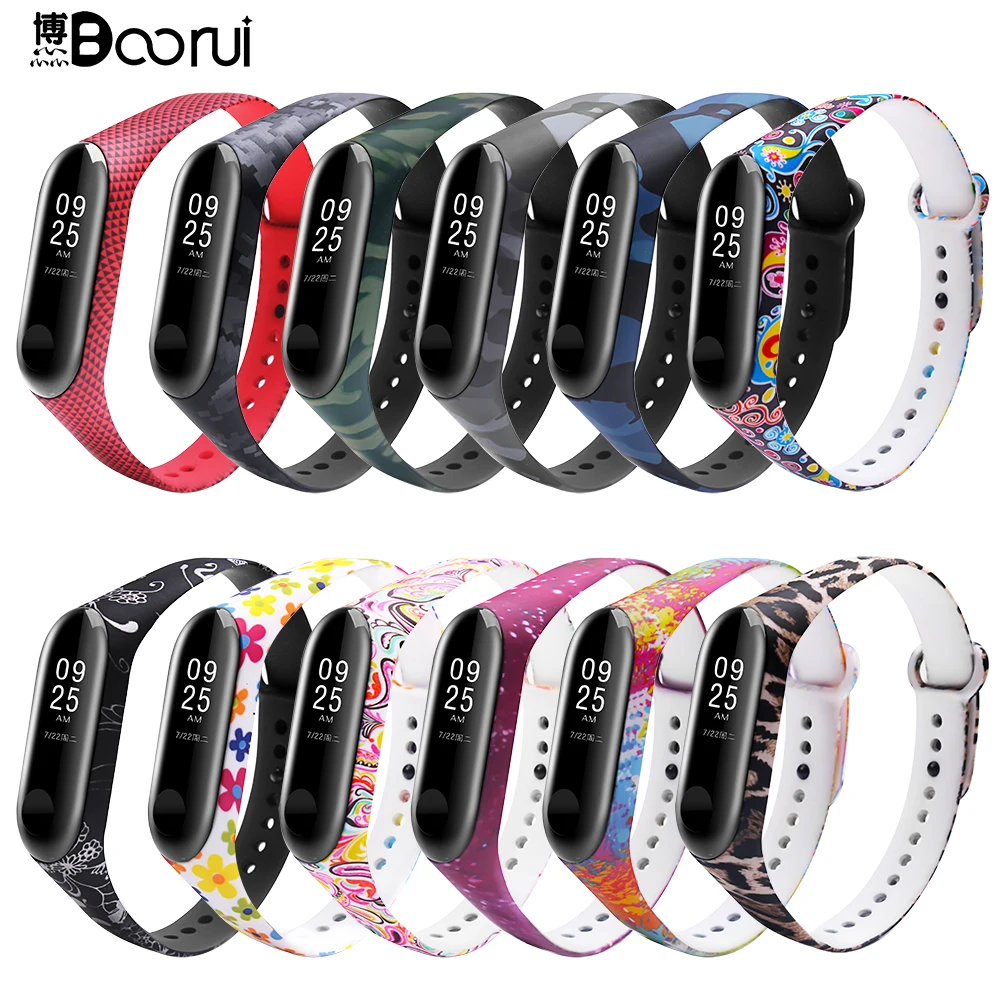 BOORUI mi band 4 ремешок умные аксессуары персонализированный принт различные цветы силиконовый сменный ремешок для xiaomi mi band 3/4