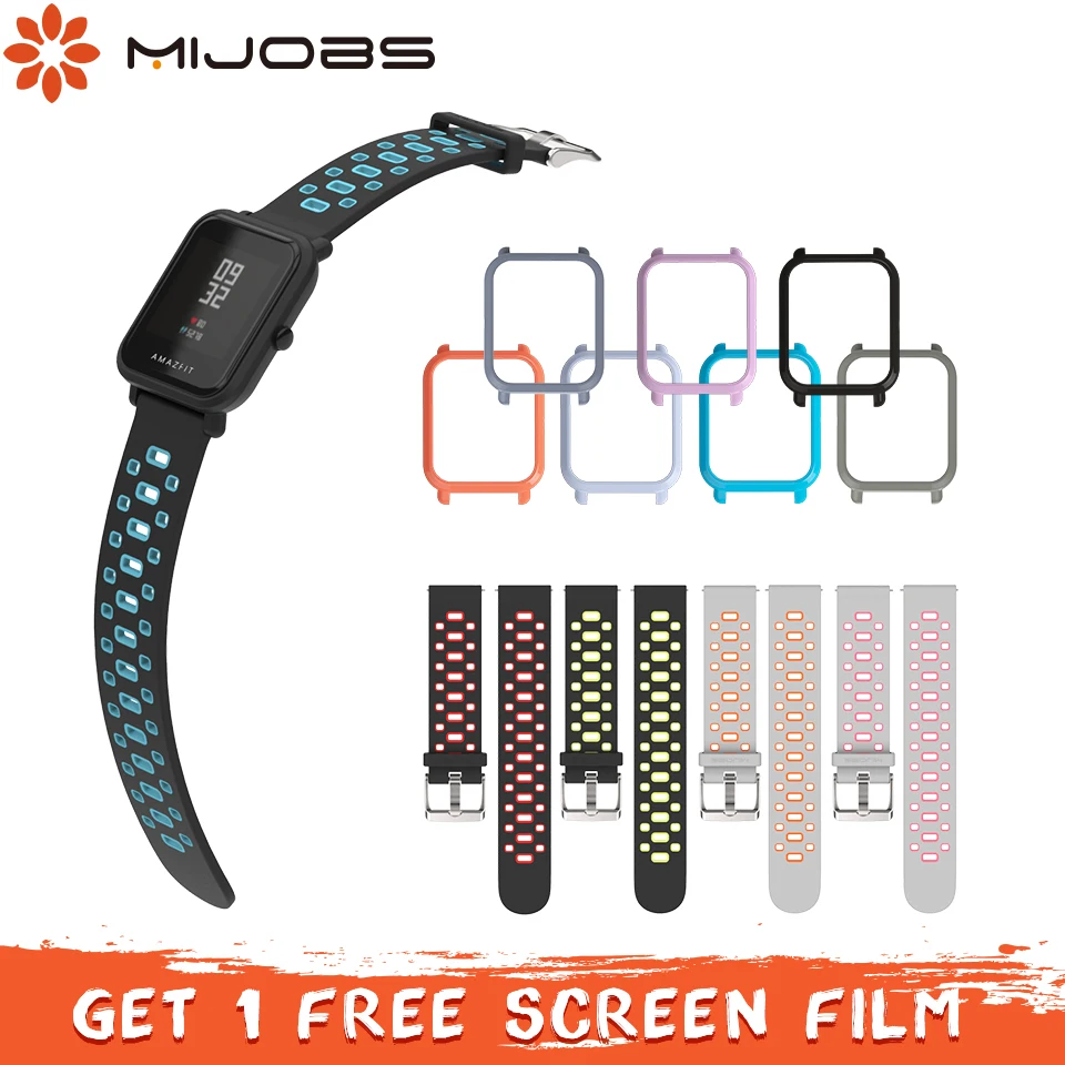 Mijobs браслет для amazfit Bip ремешок 20 мм ремешок с ПК чехол для Xiaomi Huami Amazfit Bip бит PACE Lite ремешок для часов