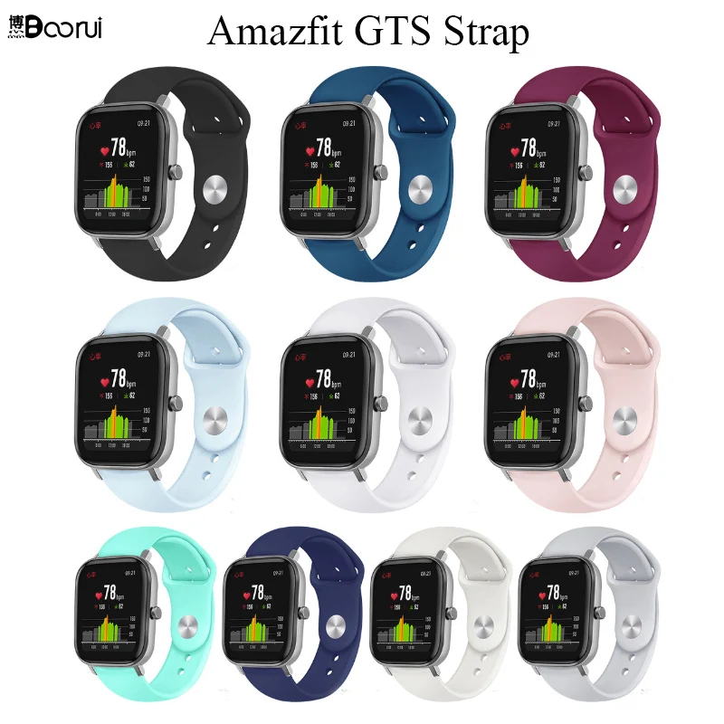 Ремешок BOORUI Amazfit GTS из чистого цветного силикона 20 мм ремешок Amazfit ремешок Bip для Xiaomi Huami Amazfit GTS/GTR 42 мм ремешок для часов
