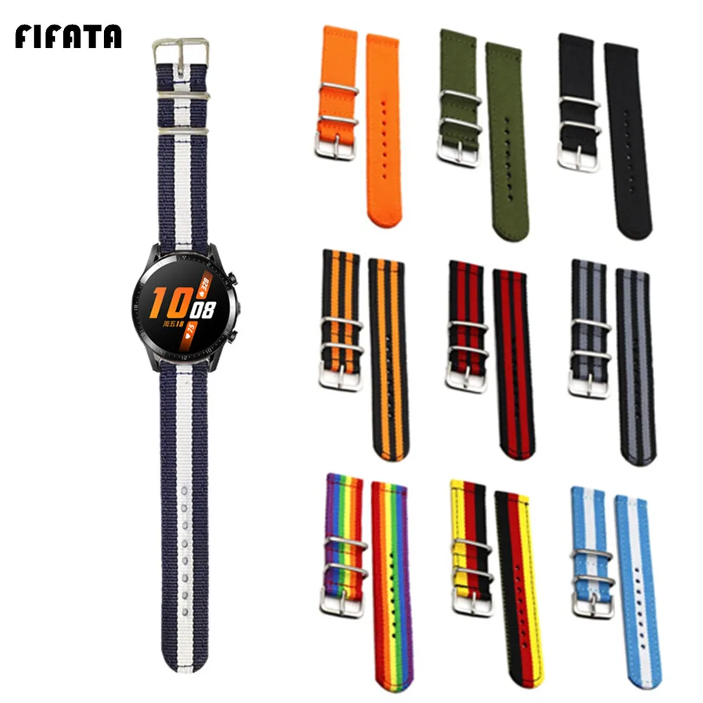 FIFATA браслет нейлон холст ремни для huawei часы GT 2 46/42 мм GT наручный ремешок для смарт-браслета Amazfit Stratos 3 2 BIP GTR GTS ремешок для наручных часов