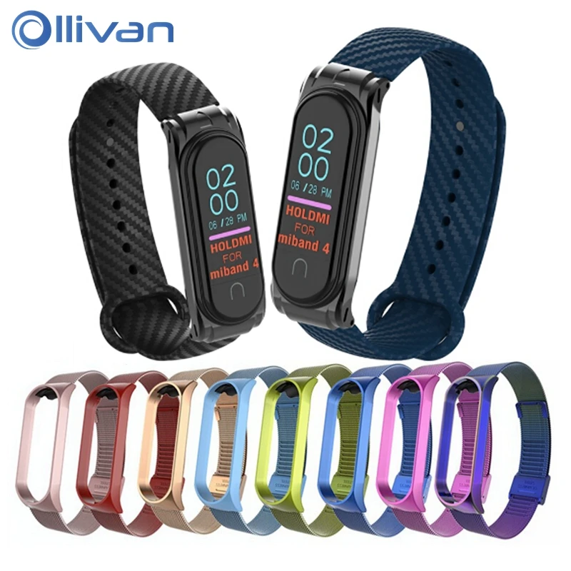 Ollivan Carbon Fiber mi Band 4 ремешок Модный Цветной ремешок на запястье металлический чехол для mi Band 4 Xiaomi mi ремешок 4 сменный Браслет