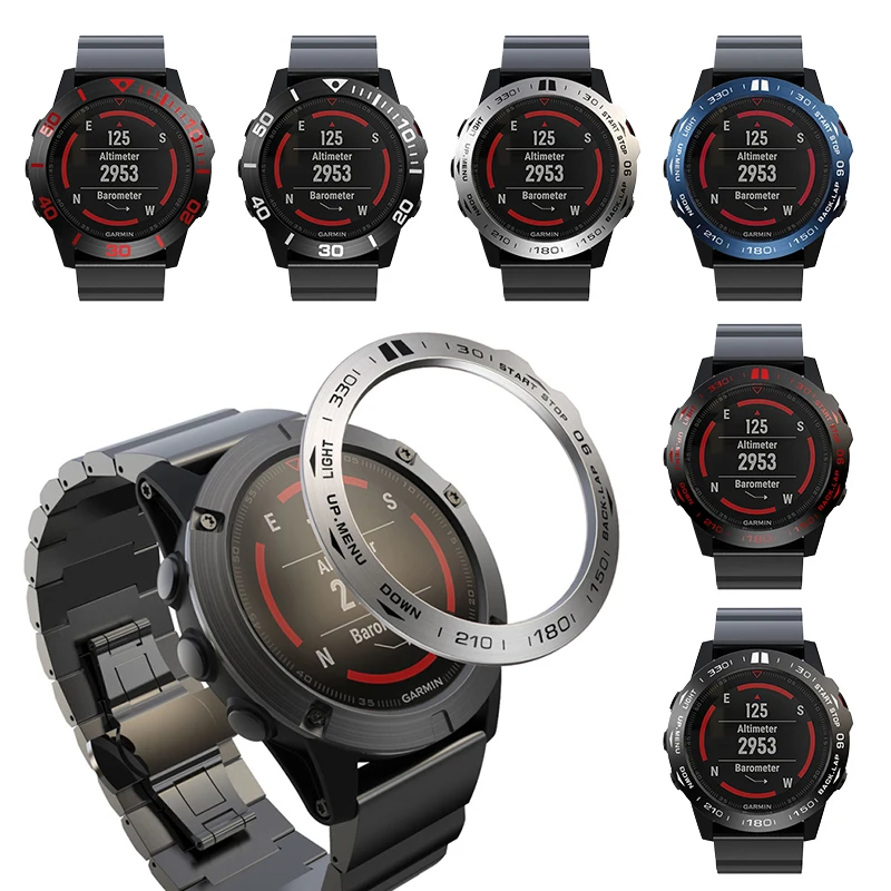 For Garmin Fenix 5 Watch Bezel Ring Stainless Steel Sculptured Time Units Adhesive Cover Anti-scratch Protection Ring Shell