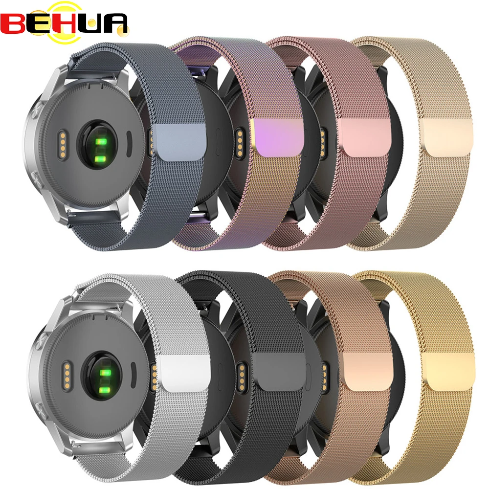 Магнитный Металлический Стальной ремешок для Garmin Vivoactive 4 4S gps Смарт-часы 18 мм 22 мм Миланская петля ремни браслет