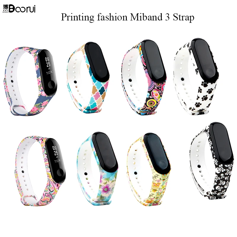 BOORUI Новые Горячая Распродажа mi band 3 Ремешок Красочные разнообразные стиль печати силиконовый ремешок Замена Для Сяо mi 3 smart band