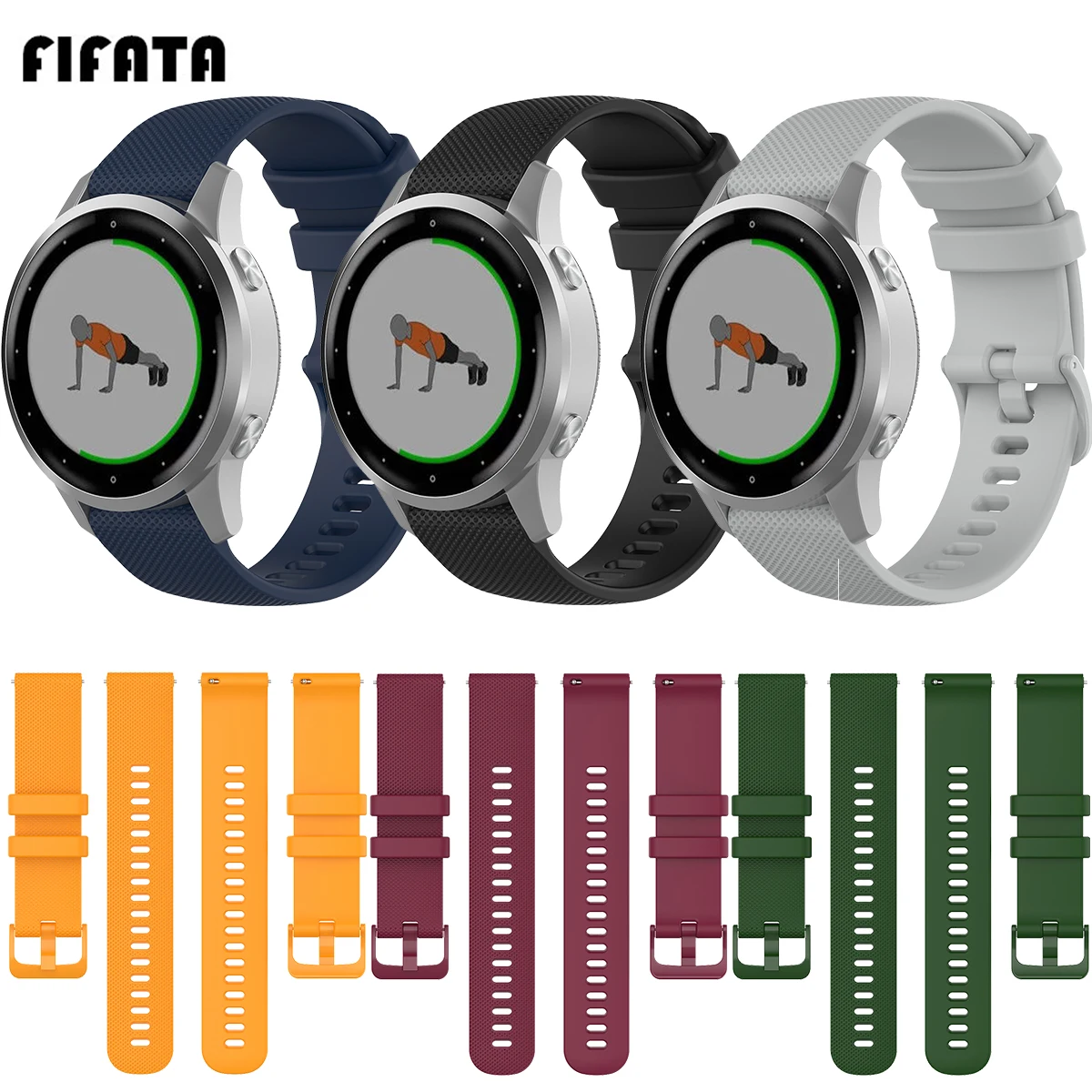 FIFATA 18 мм Цветной силиконовый сменный ремешок для часов Garmin vivoactive 4S/vivomove 3 S, Сменные аксессуары для умных часов