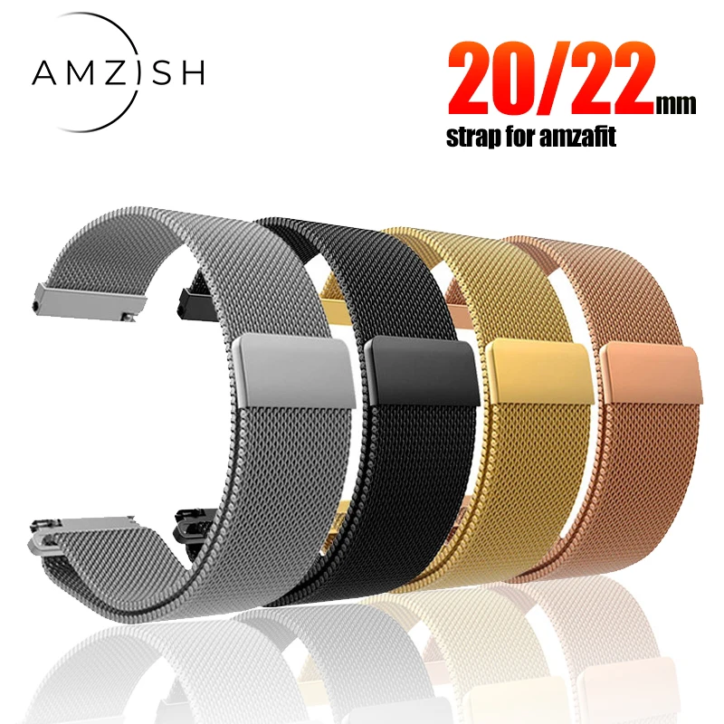 amzish 20/22 мм Миланская петля Ремешок для Huami Amazfit Bip S gts gtr Браслет Для xiaomi Amazfit GTR 42 мм 47 мм Pace Stratos ремешок
