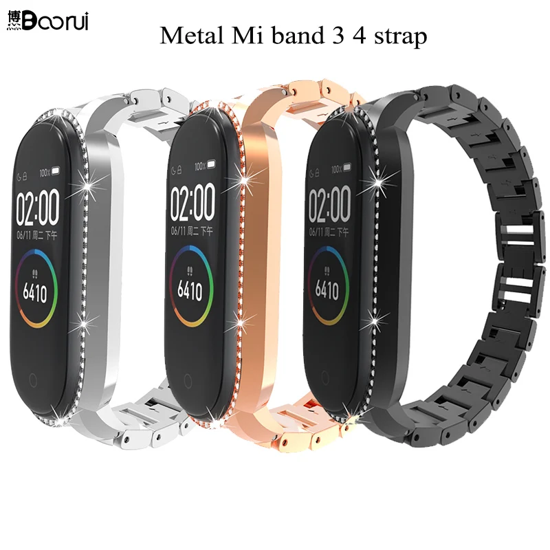 Металлический ремешок BOORUI mi band 3 4, ремешок mi Band 4, ремешок на запястье из нержавеющей стали, металлические ремни для xiaomi mi band 4 3, чехол с бриллиантами