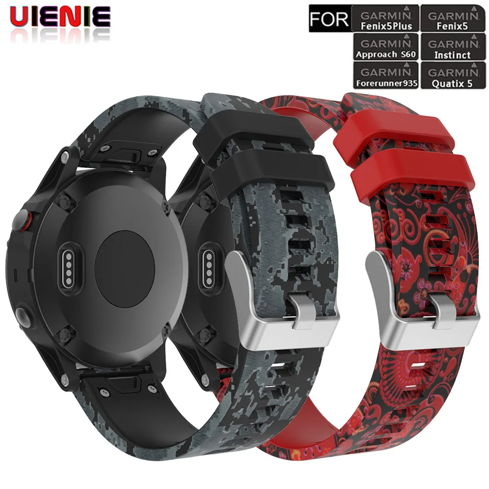 UIENIE ремешок для Garmin Fenix 6/5/Fenix 5 Plus/Forerunner 935 945/подход S60/Quatix 5 быстросъемный силиконовый ремешок для часов с принтом