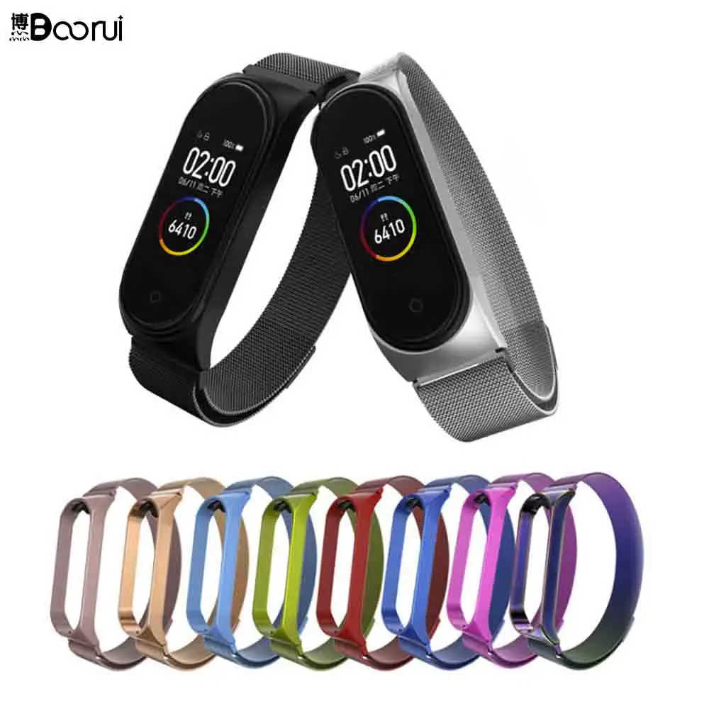 BOORUI металлический ремешок для Xiaomi mi Band 3 4 стальной mi band 4 металлический магнитный mi lanese mi band 3 металлический ремешок умные аксессуары