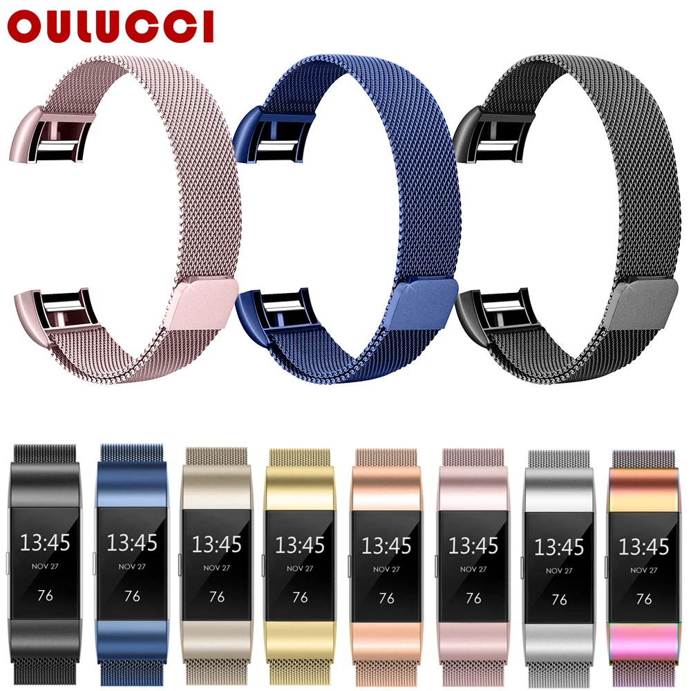 OULUCCI металлический ремешок из нержавеющей стали для браслета Fitbit charge 2 Миланская петля Магнитный Fitbit charge 3 ремешок умный Браслет для женщин и...