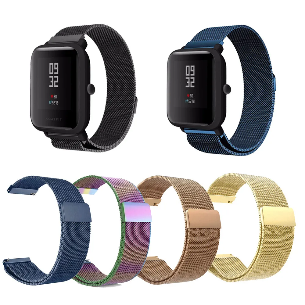 Металлическая Миланская петля для Xiaomi Huami Amazfit Bip ремешок 20 мм 22 мм ремешок для huawei Watch GT активный ремешок