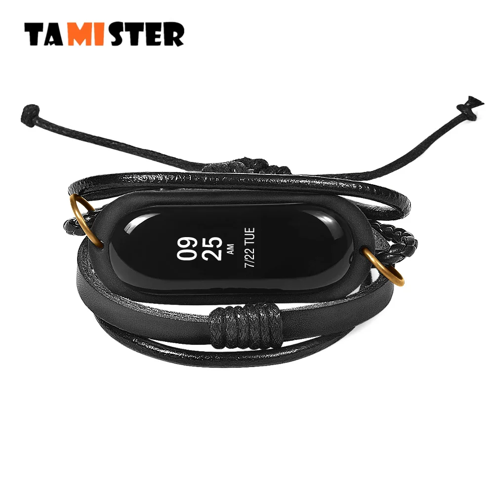Ретро часы ремешок для Xiaomi mi группа 3 браслет кожаный браслет Винтаж часы группа Плетеный замена Браслет для mi Группа 3