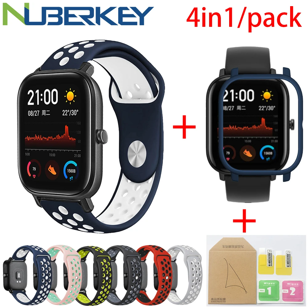 4в1 для Xiaomi Huami Amazfit GTS спортивный силиконовый ремешок для часов Ремешок Браслет с PC чехол Защита экрана