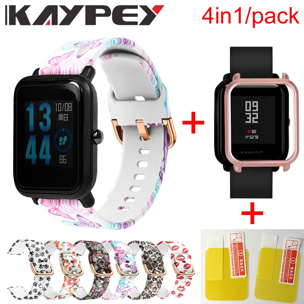 4in1 мягкий силиконовый наручный ремешок для Xiaomi Huami Amazfit Bip маленькие часы-браслет с ПК чехол Крышка Экран защитная пленка