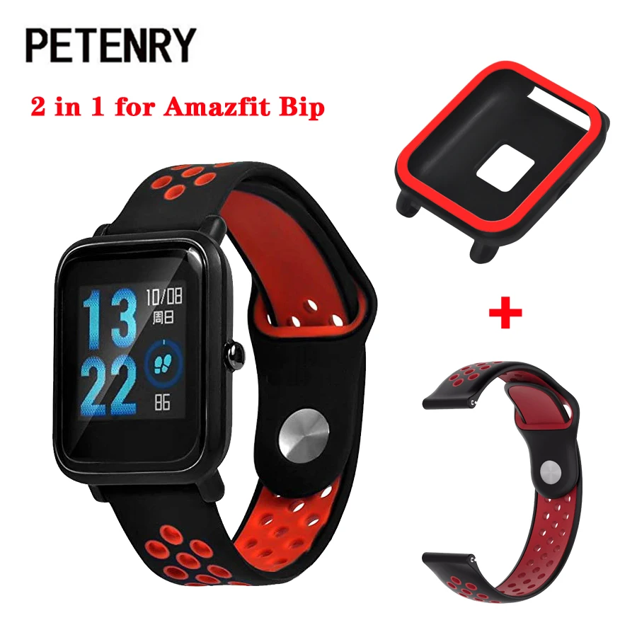 2 в 1 для Amazfit Bip ремешок часы браслет + ТПУ чехол бампер для Xiaomi Huami Amazfit Bip бит Молодежные Lite аксессуары