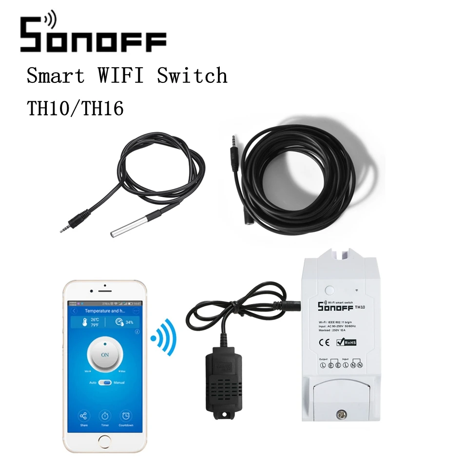 Умный WIFI переключатель SONOFF TH10 TH16, контроль температуры и влажности, умный переключатель, комплект домашней автоматизации, работает с Alexa Google