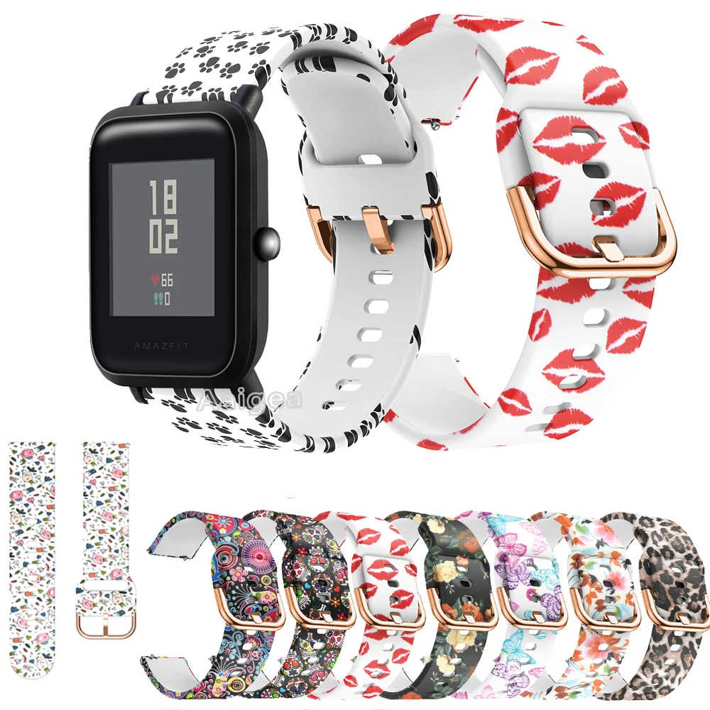 Камуфляжный мягкий силиконовый ремешок для часов Ремешок Для Xiaomi Huami Amazfit Bip Смарт-часы сменный Браслет 20 мм ремешок на запястье для женщин