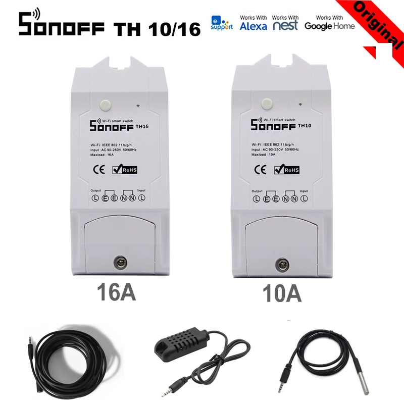 Sonoff TH16 TH10 10A 16A умный Wifi переключатель для EWelink температура монитора влажности домашняя Автоматизация работа с Alexa Google Home