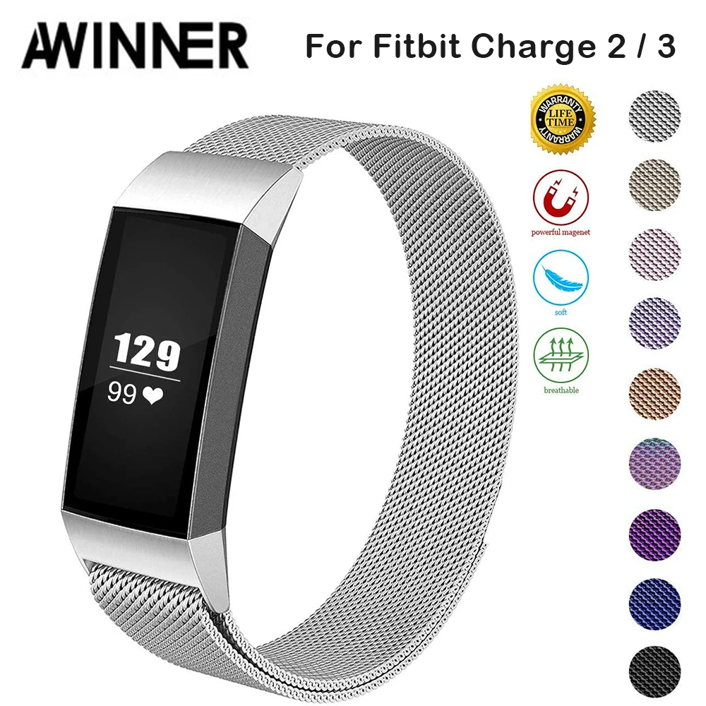 AWINNER металлический ремешок из нержавеющей стали для браслета Fitbit charge 2 Миланская петля Магнитный Fitbit charge 3 ремешок умный Браслет ремешок на з...