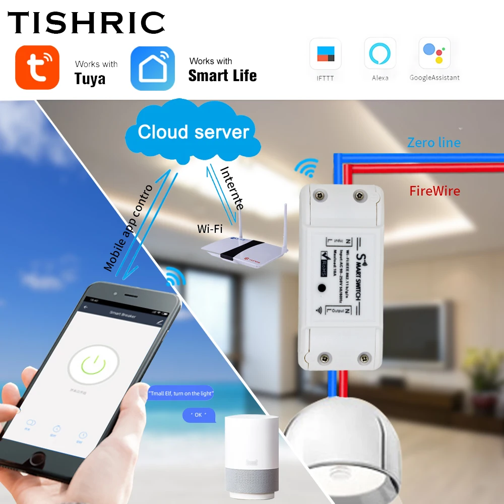 Умная жизнь TUYA, Wifi, умный переключатель, таймер, беспроводной пульт дистанционного управления, голосовое управление, 10А, работа с Google Home Alexa ...