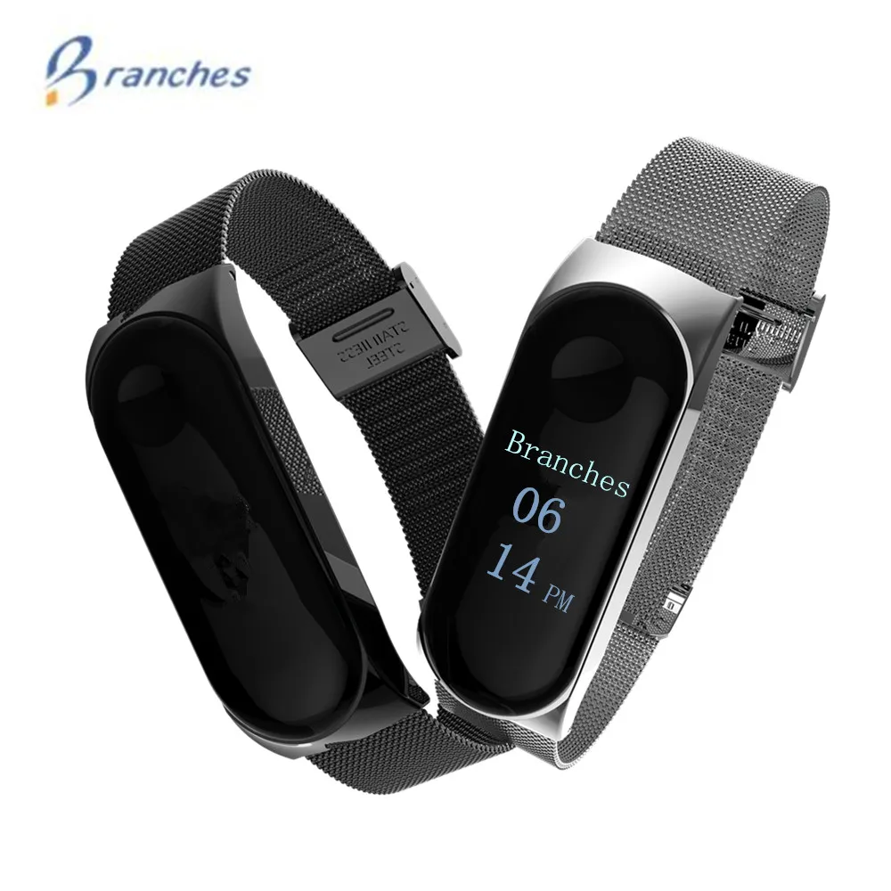 Филиалы mi band 3 ремешок замена магнетизм браслет mi band 3 браслеты на запястья черный магнит металлический для xiaomi band3