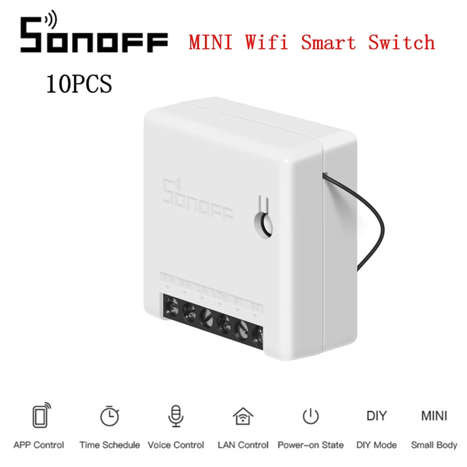 SONOFF 10 шт. мини двусторонний смарт-переключатель приложение управление голосовым таймером DIY Автоматизация умный дом работа с внешним переключателем для Google