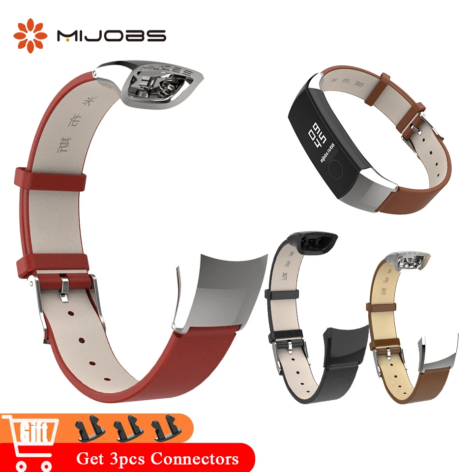 Mijobs кожаный ремешок для huawei Honor Band 4 Браслет Смарт-часы аксессуары умный Браслет для Honor Band 4 ремешок