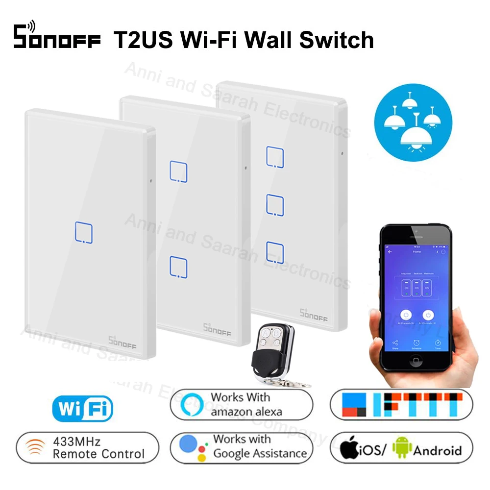 Sonoff T1 1 2 3 банды умный WiFi сенсорный переключатель US панель WiFi RF/APP/сенсорный контроль настенный выключатель света Умный дом работает с Alexa