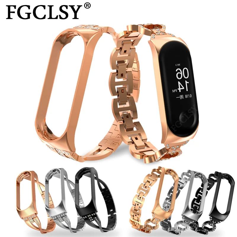 FGCLSY для Xiao mi Band 4 3 ремешок для mi Band 4 3 умный Браслет сменный металлический ремешок на запястье алмазный браслет mi Band 4