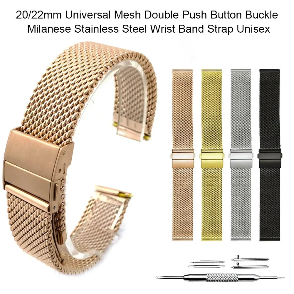 20 22 мм Универсальный сетчатый стиль Миланская Нержавеющая сталь ремешок для часов Ремешок унисекс сетка две кнопки пряжка