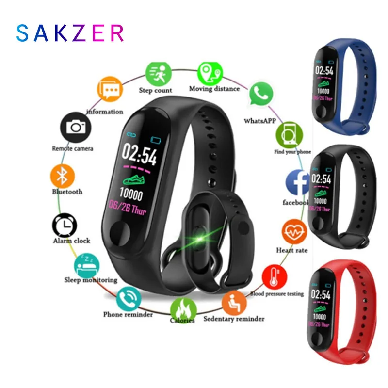Спортивные Смарт-часы M3, пульсометр, фитнес-трекер, умные часы, цветной экран, кровяное давление, Pedomater PK, для Xiaomi Mi, ремешок 3