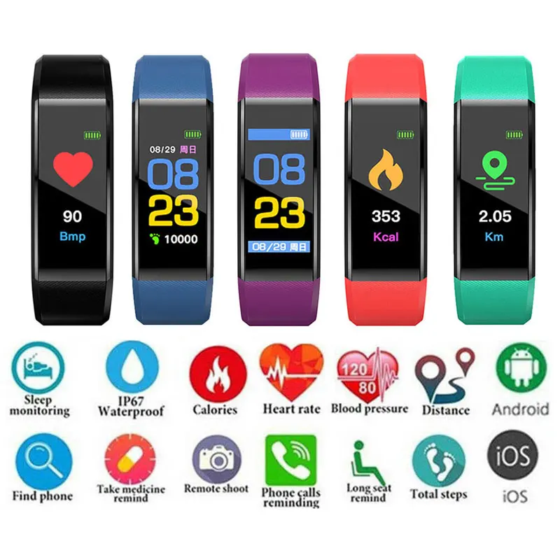 M3 водонепроницаемый спортивный Браслет фитнес-трекер Пульс кровяное давление сообщения напоминание цветной экран умный Браслет