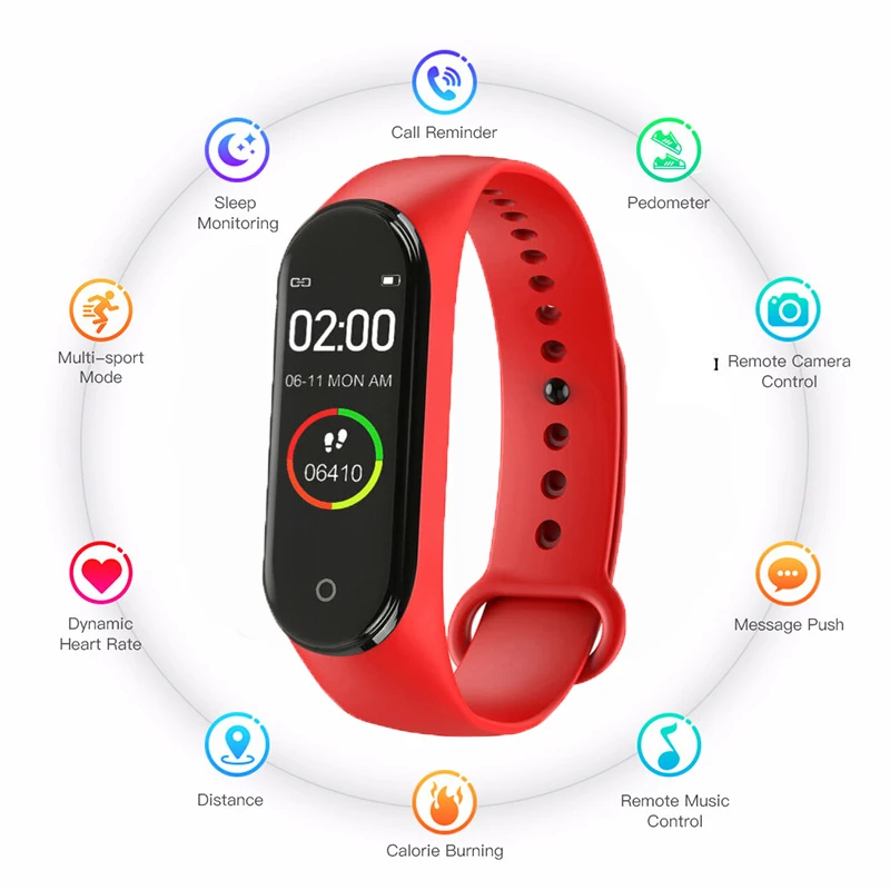 Умные часы 2019 M4, умный Браслет, IP65, водонепроницаемые часы, кровяное давление, пульсометр, фитнес-трекер, умный Браслет