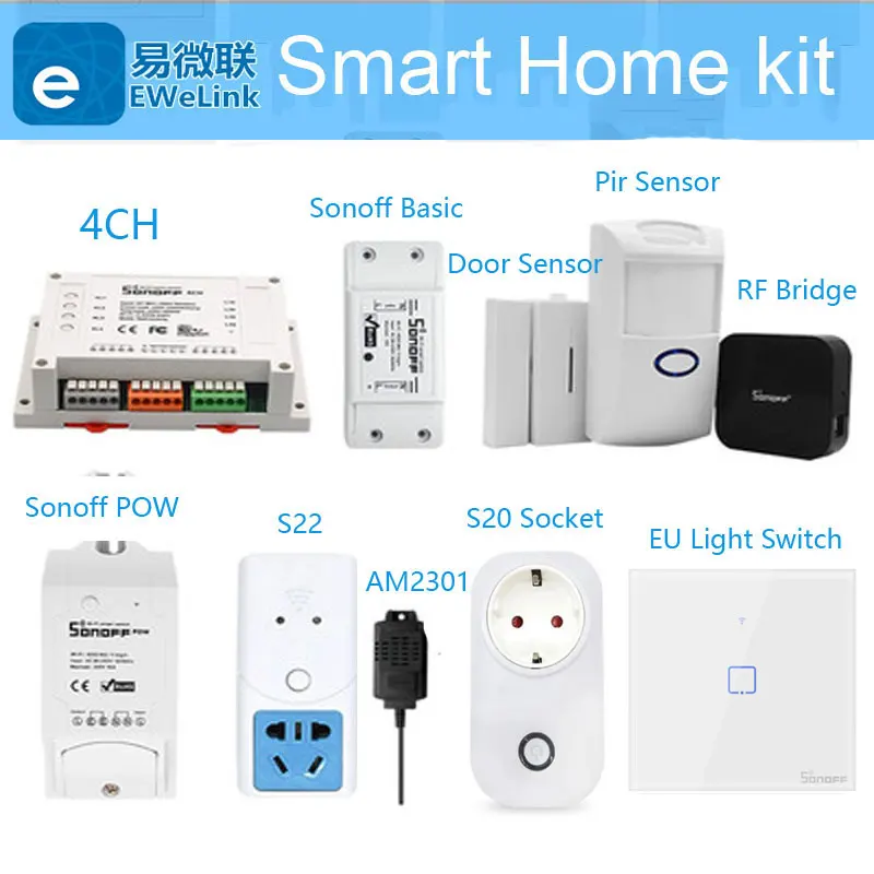 2019 Sonoff 4CH 2CH 1CH Wifi умный Diy Переключатель умный дом S20 ЕС розетка дверной Pir датчик температуры работает с Alexa Google Home