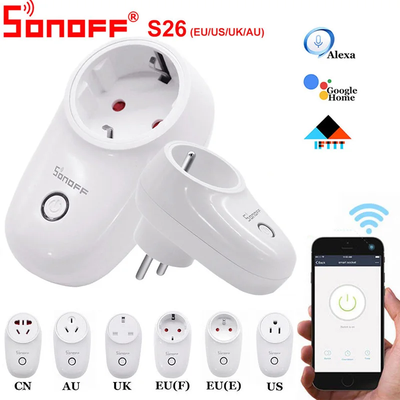 Sonoff S26 WiFi умная розетка для США/Великобритании/ЕС, Беспроводная розетка, Умный домашний переключатель, работает с Alexa Google Assistant IFTTT